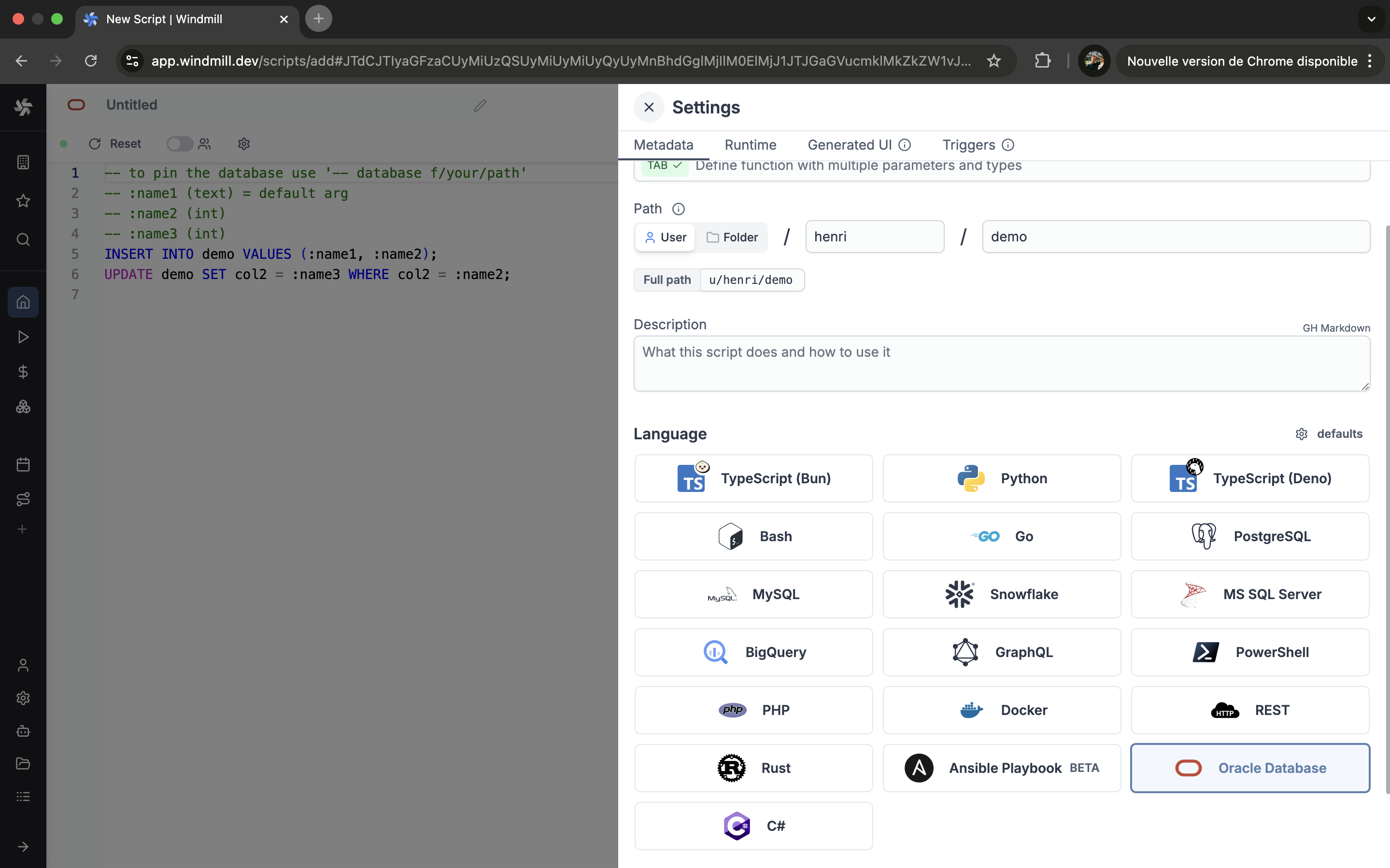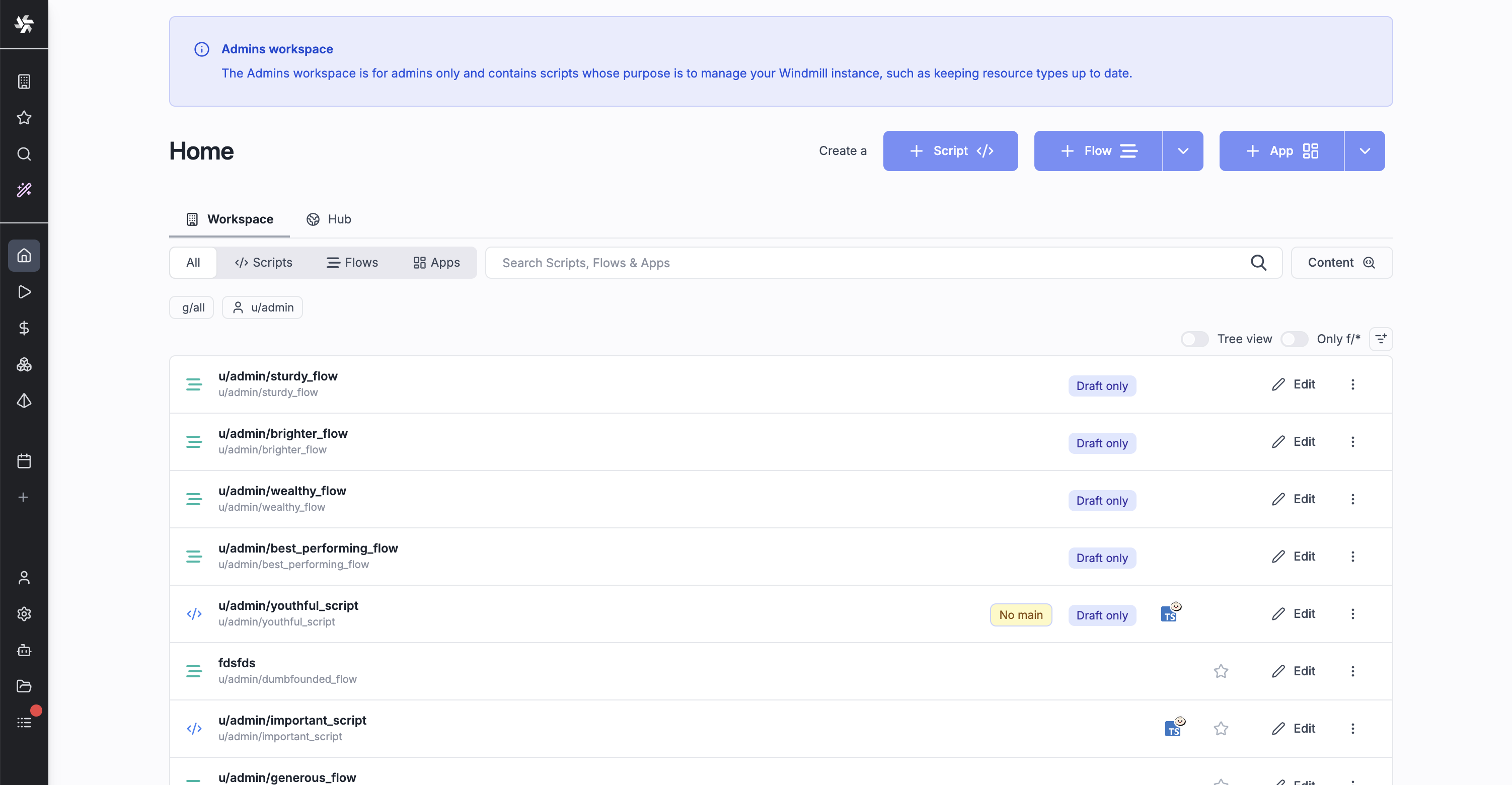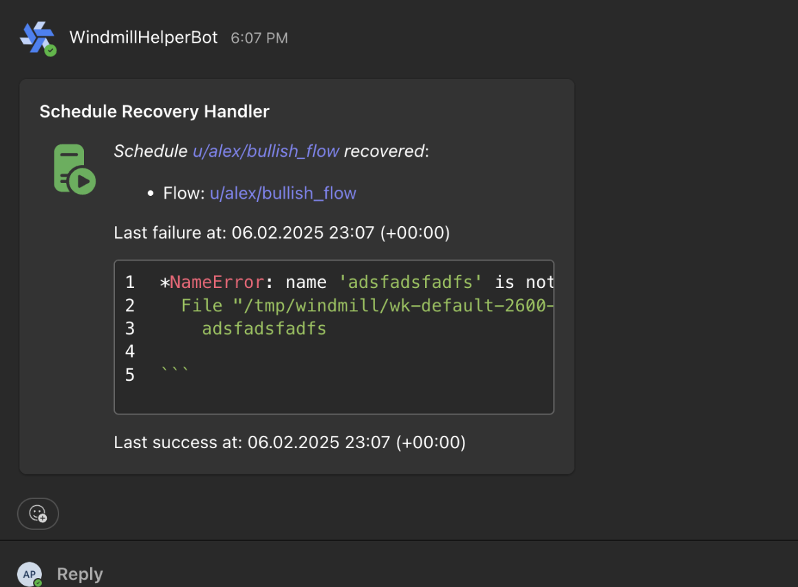 - Trigger scripts with @Windmill in public channels, private channels, DMs, and threads